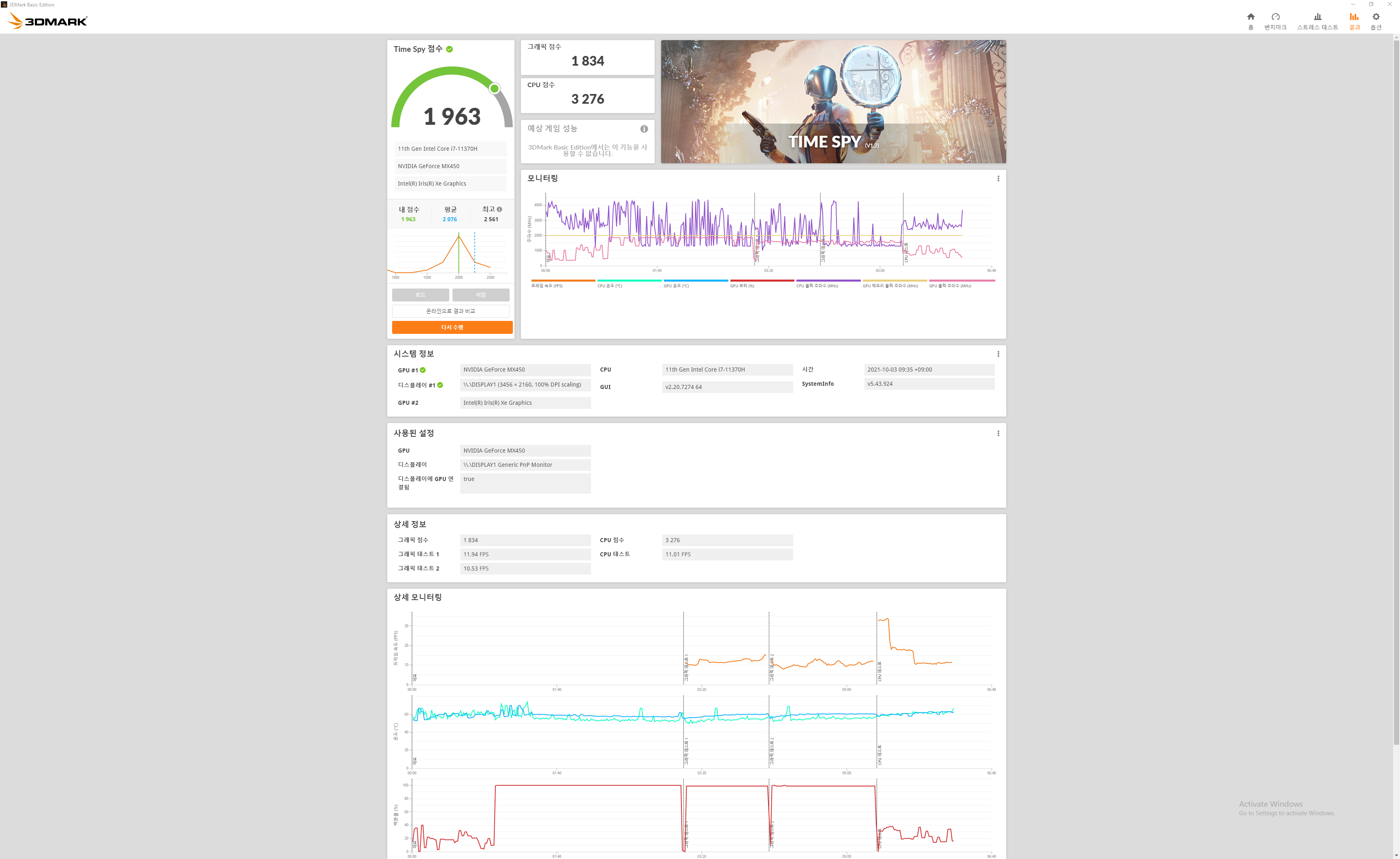 그래픽 측정을 위한 Fire Strike점수는 아래와 같으며