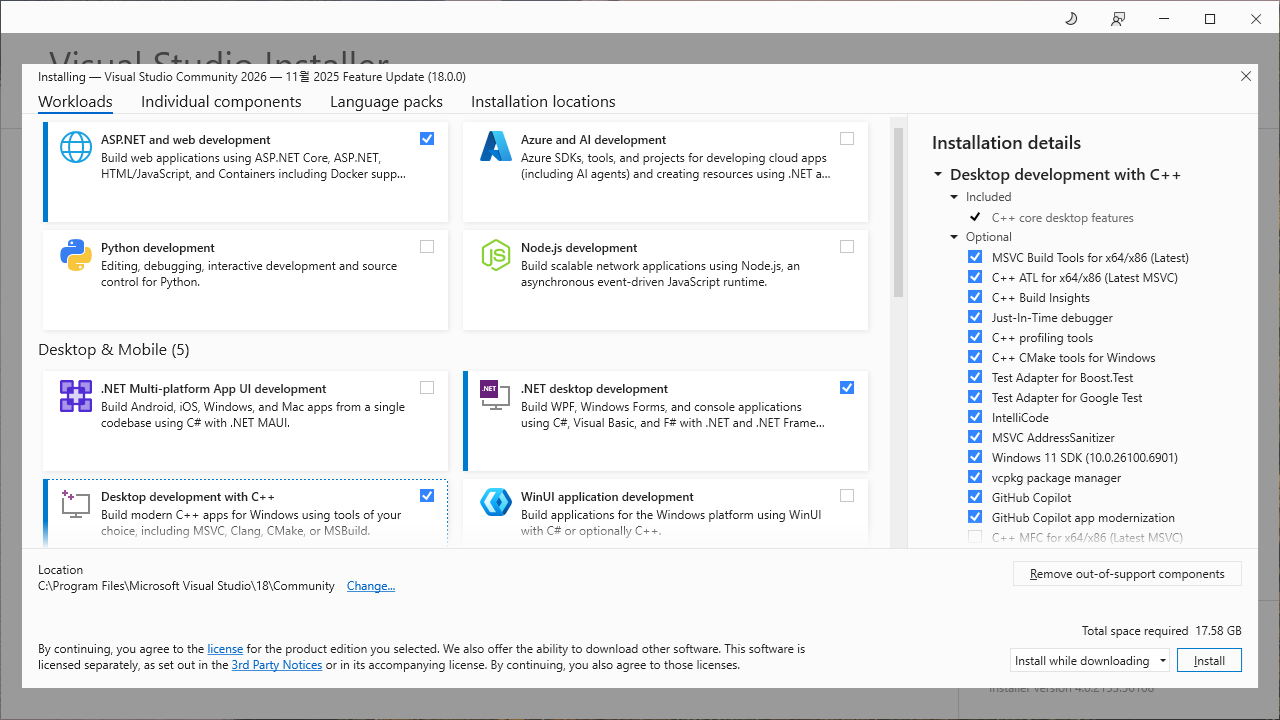4) VS2026 내려받고 설치하기