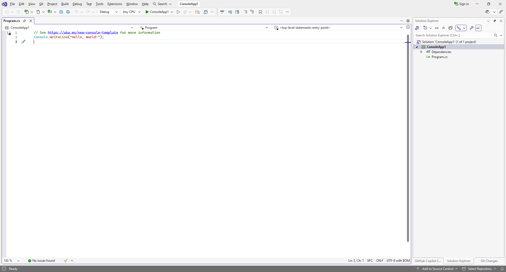.NET 5 또는 그전에서나 혹은 그 이후의 .NET Version이라 하더라도 Project생성 시 'Do net use top-level statements'항목을 선택했다면 Program.cs는 다음과 같은 형태로 만들어지게 됩니다.
