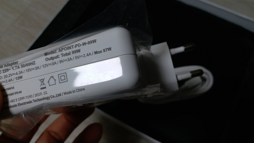 다행스럽게도 노트북은 외관상 큰 문제는 없어 보였습니다. 전원 어댑터는 비닐이 덮혀진 부분을 제외하고 다른 부분에서 흠집이 보였습니다.
