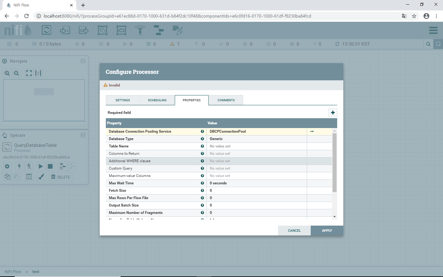 6. Processor의 Configure에서 Table Name 설정