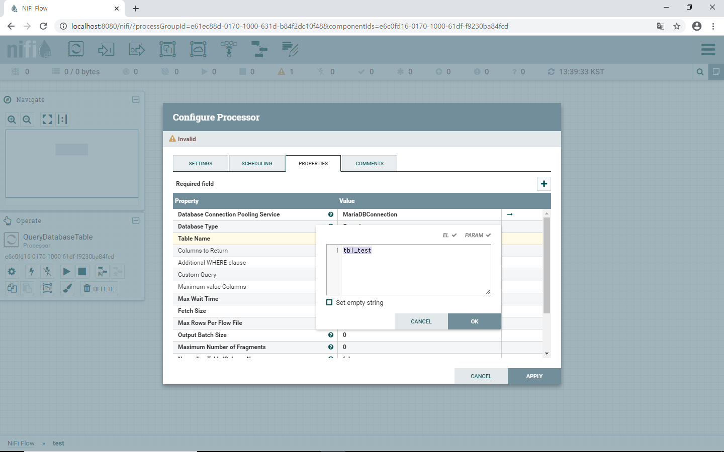 6. Processor의 Configure에서 Table Name 설정