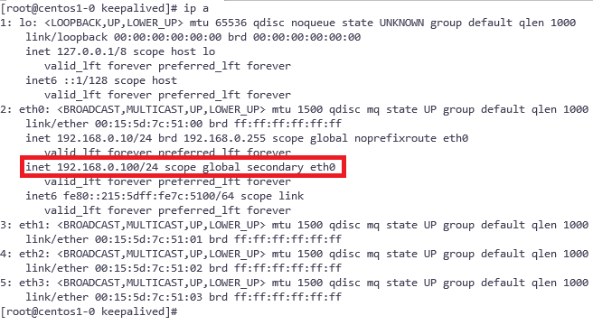10. 시작 후 ip a 명령을 통해 가상 ip가 지정한 이더넷에 올라왔는지 확인합니다.