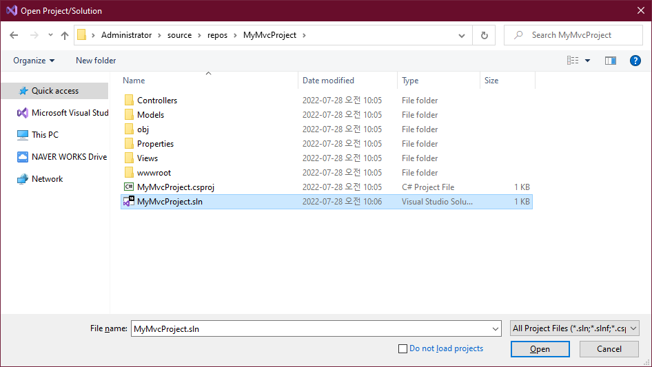 위의 과정으로 프로젝트를 생성하고 나면 Visual Studio를 실행해 생성된 프로젝트를 불러올 수 있습니다.
