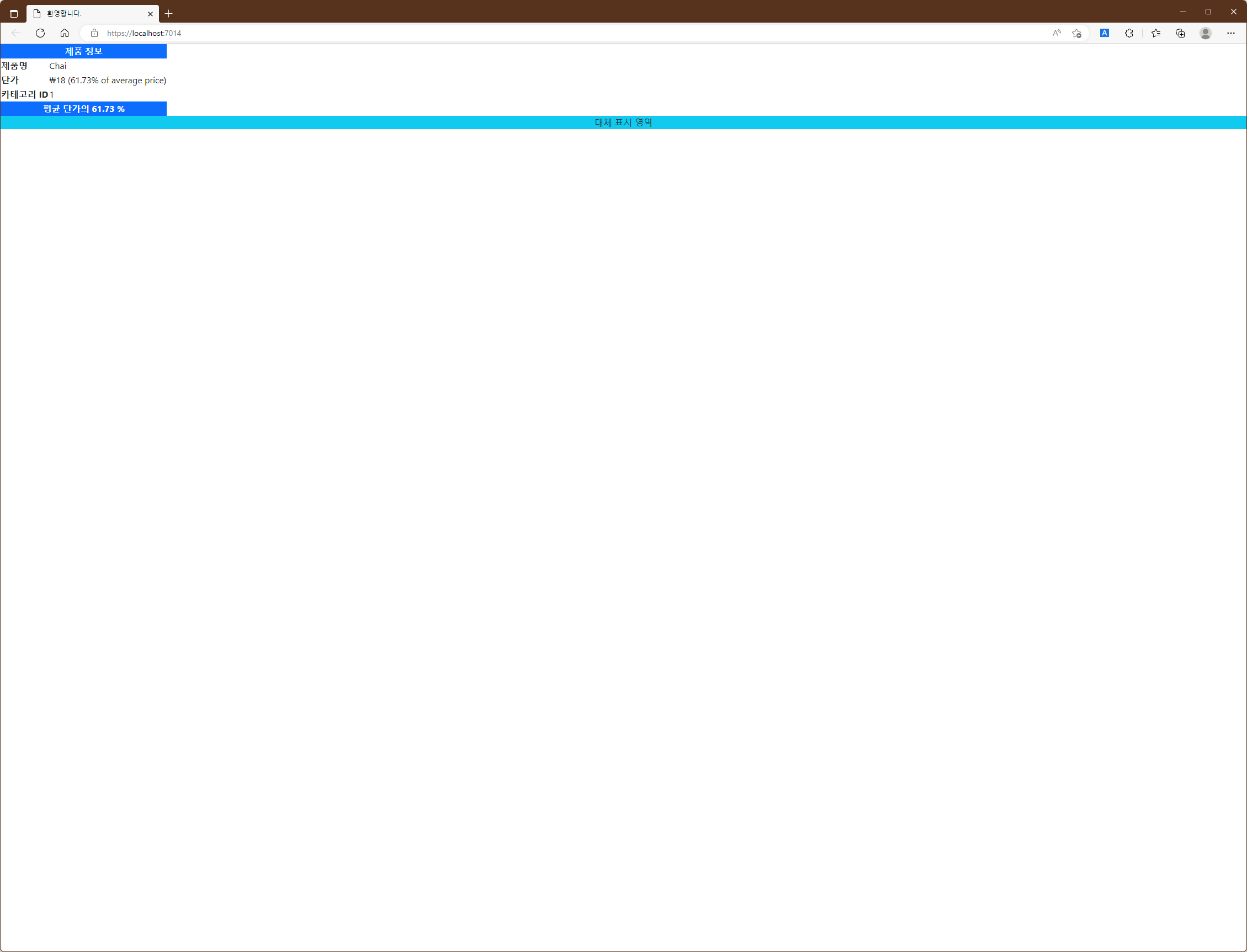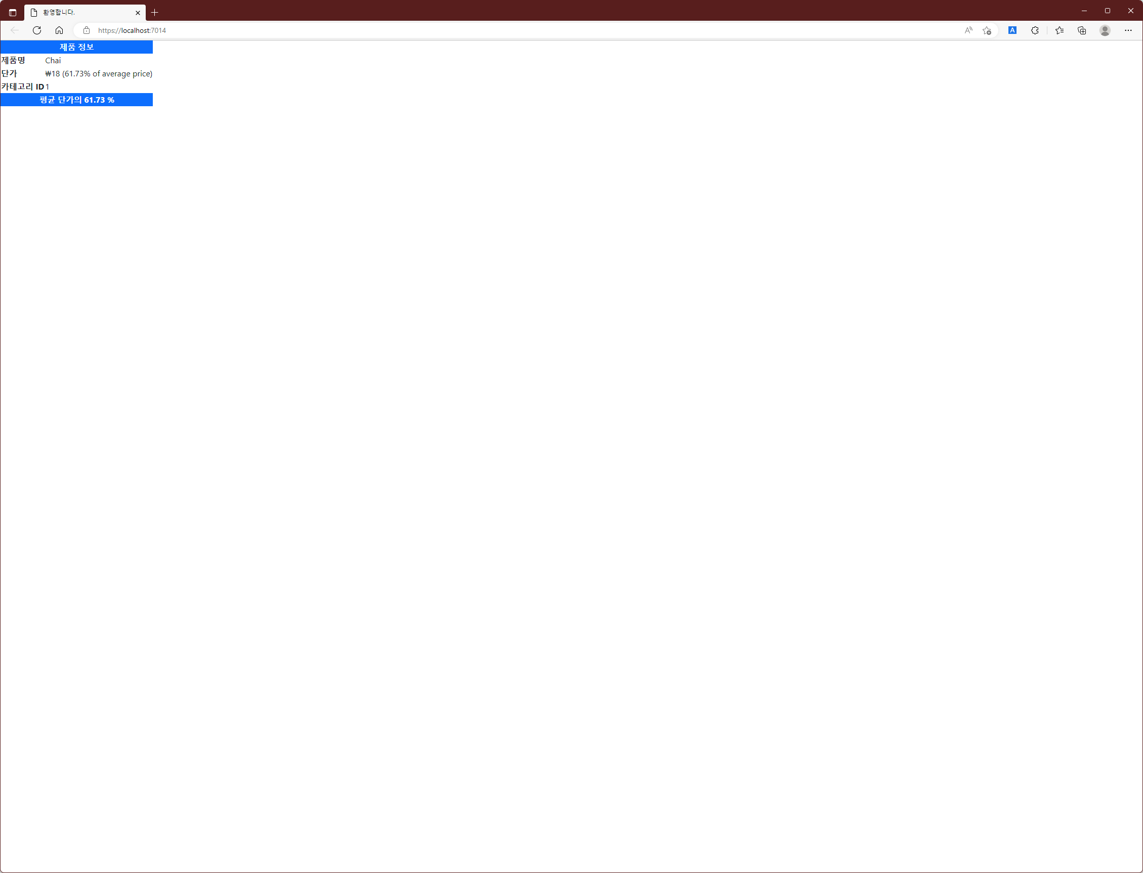 위와 같이 변경한 후 Project를 다시 실행하면 아래와 같은 응답을 볼 수 있습니다.