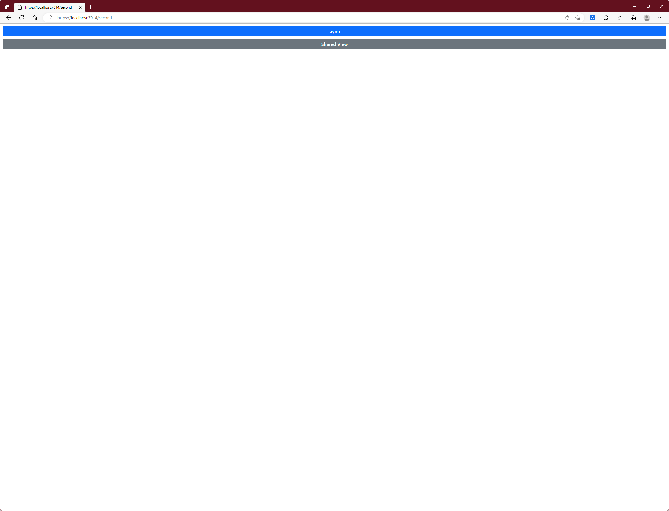 Layout이 적용되면 RenderSection표현식은 특정한 section의 content를 응답에 추가시키게 됩니다. Section에 포함되지 않은 View의 영역은 RenderBody method에 의해 응답으로 추가됩니다. Section이 적용된 결과를 확인하기 위해 Project를 실행합니다.