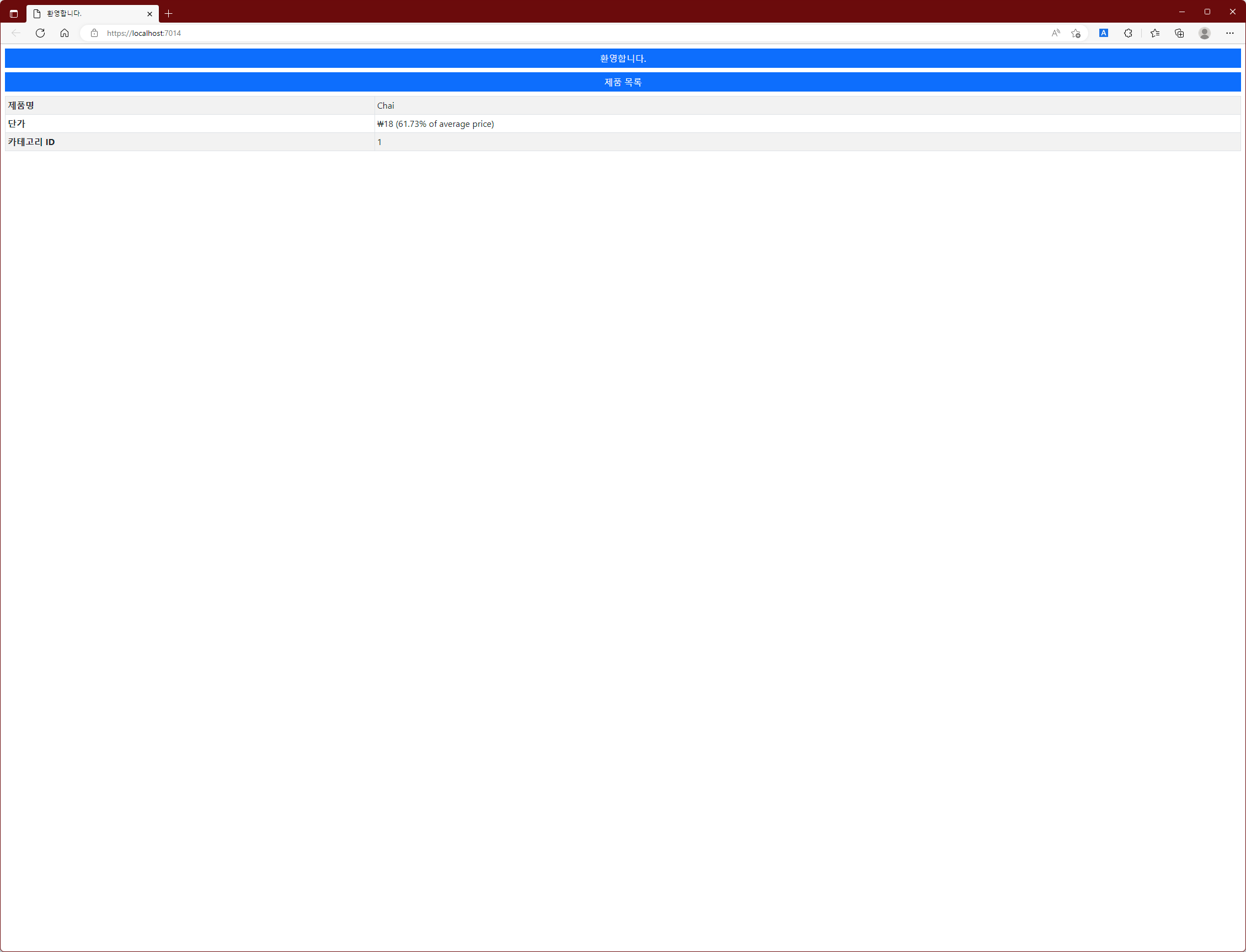 위와 같이 변경한 후 Project를 다시 실행하면 아래와 같은 응답을 볼 수 있습니다.