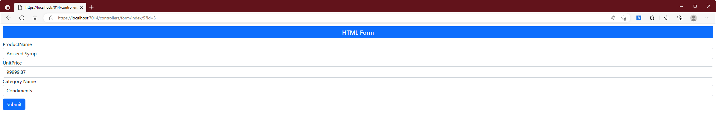 public IActionResult SubmitForm(string ProductName, decimal UnitPrice)