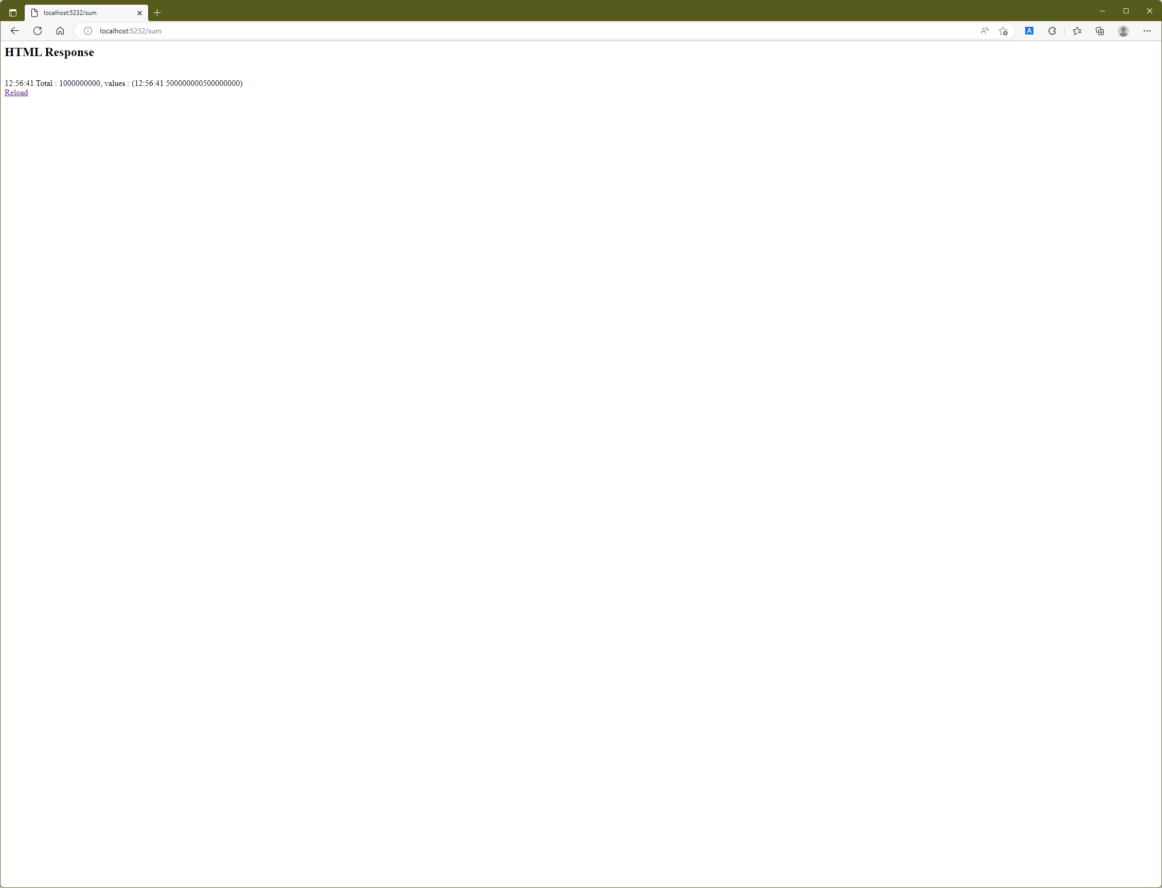 await res.Format(context, $"<div>{DateTime.Now.ToString("HH:mm:ss")} Total : {count}, values : {totalString} <br /> <a href={url}>Reload</a>");