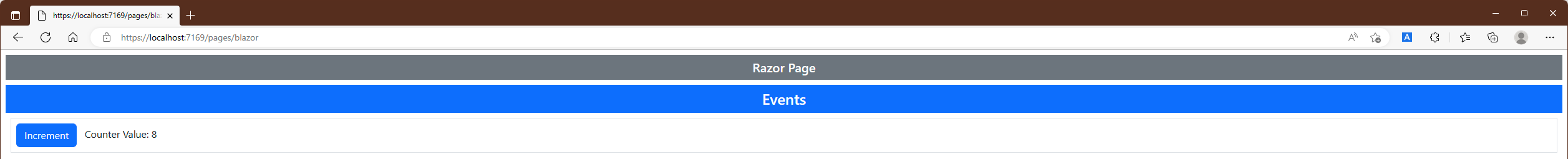 project를 실행하고 /pages/blazor URL을 요청하면 아래와 같은 응답을 볼 수 있습니다.