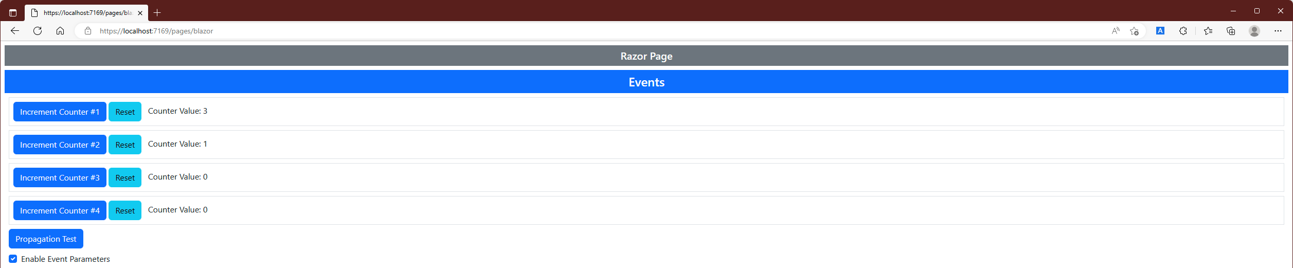 event의 변경과 관련된 상호관계는 Blazor folder의 Bindings.razor file에서 Data Binding을 사용한 것처럼 값과 event모두 단일 attribute를 통해 설정될 수 있는 data binding을 표현하는 데에도 사용될 수 있습니다.