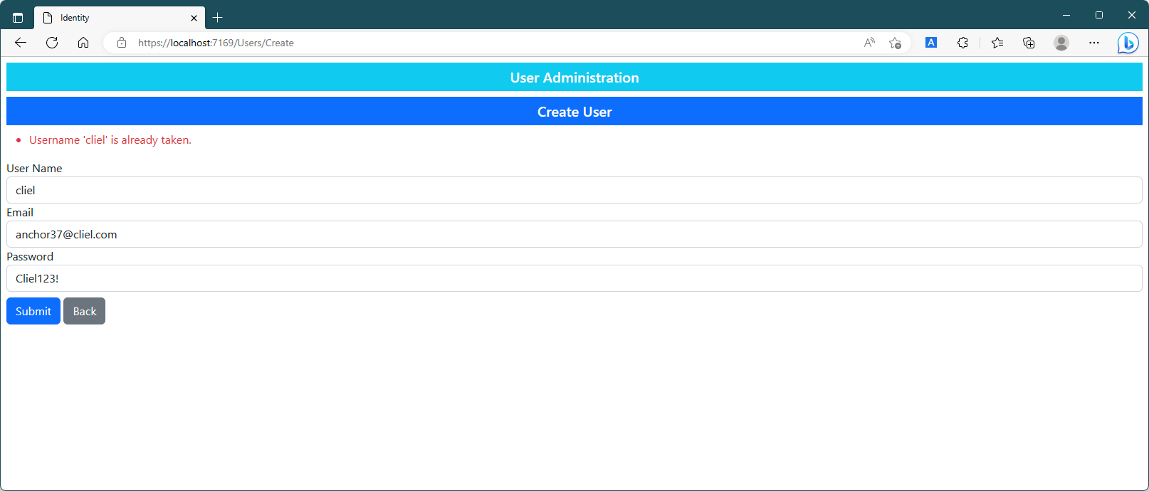 <h5 class="bg-info text-white text-center p-2">User Administration</h5>