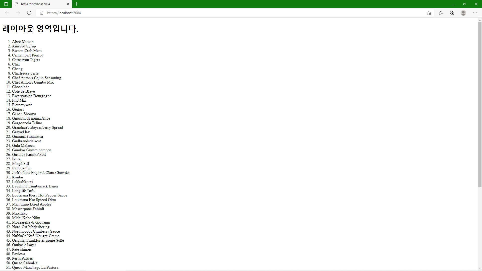 정상적으로 동작하는것을 확인하기 위해 Products테이블의 ProjectName 컬럼을 가져와 보여주는 화면을 만들어 보겠습니다.