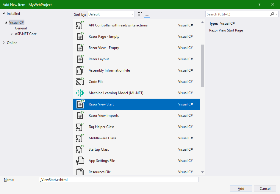 | AddViews | .cshtml 뷰를 지원합니다. |