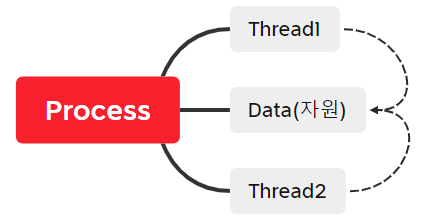 이와 같이 여러가지 상황에서 다중 작업이 필요한 경우 스레드가 사용될 수 있는데 스레드 말고도 프로세스 자체를 여러 개 사용하는 '멀티 프로세스'방식이 사용되는 경우도 있습니다. 스레드는 하나의 프로세스 안에서 실행되는 작업을 나누는 것이므로 프로세스의 자원을 쉽게 공유할 수 있고 프로세스에 할당된 자원을 사용하므로 스레드를 실행하기 위한 별도의 메모리나 기타 자원을 할당하는 하는 과정을 거치지 않아도 된다는 이점이 있습니다.