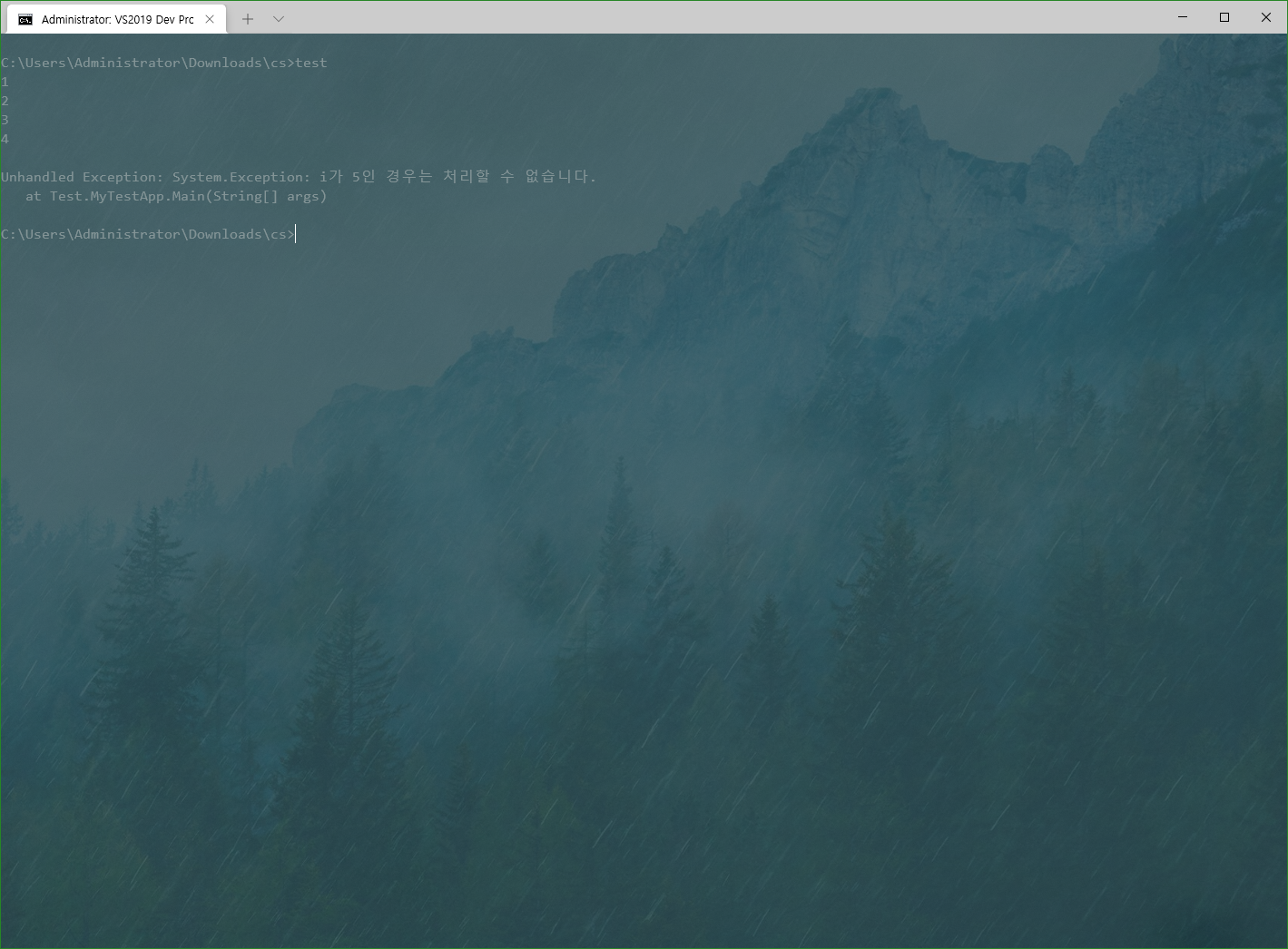 throw new Exception("i가 5인 경우는 처리할 수 없습니다.");