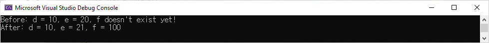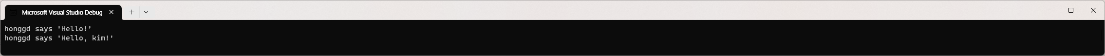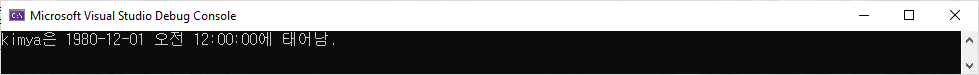 예제를 보면 ToString이라는 method를 호출하고 있는데 실제 Person class를 보면 아무것도 존재하지 않습니다. 그럼 어떻게 ToString method가 사용될 수 있을까? 이런 것이 가능한 이유는 잠시 후 알아보기로 하고 일단 project를 실행하여 아래와 같은 결과가 표시되는지를 확인합니다.