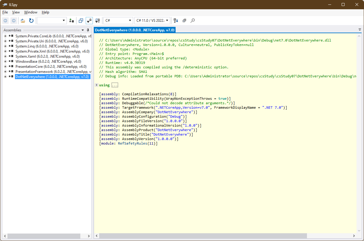 사실 decompile에 관한 이러한 내용은 C#, Visual Basic, F#과 같은 .NET언어 뿐만 아니라 C, C++, Delphi 및 assembly 언어(debugging에 연결하거나 disassembled 또는 decompile 될 수 있는)에도 해당하는 사실입니다. 아래 표는 해당 목적을 위해 사용하는 일부 도구를 나타내고 있습니다.