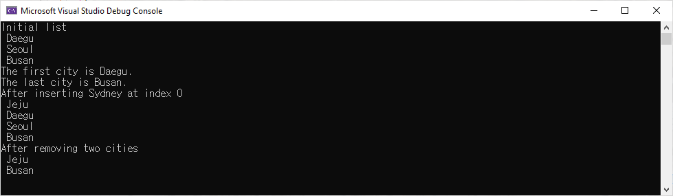 string cities = "Seoul,Busan,Daegu,Daejeon,Jeju";