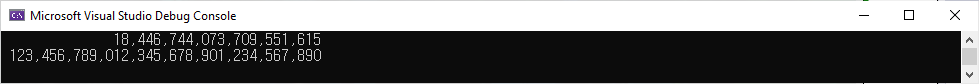 Console.WriteLine($"{bigger,40:N0}");