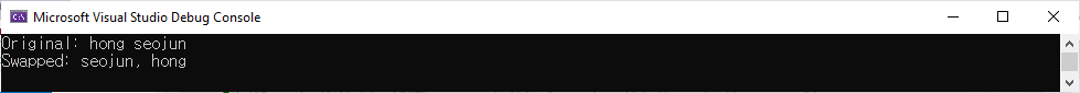 Program.cs에서 사람의 이름을 저장하는 string변수를 추가합니다. 이때 성과 이름은 공백으로 구분합니다. 그리고 해당 공백의 위치를 찾아 성과 이름을 분리하며 다른 순서로도 재결합될 수 있도록 합니다.