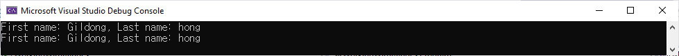 Console.WriteLine($"First name: {firstName}, Last name: {lastName}");