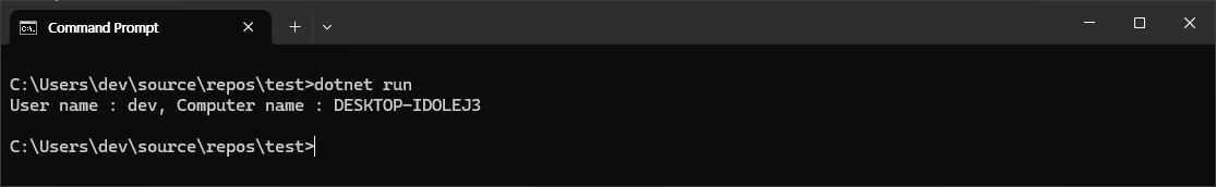 string comUser = "User name : %USERNAME%, Computer name : %COMPUTERNAME%";