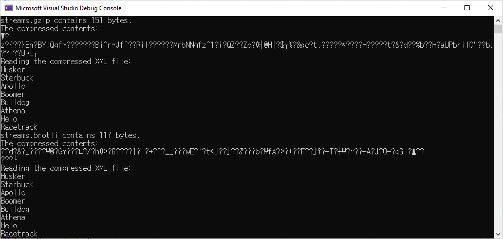 Console.WriteLine($"Reading contents of {backupFile}:");