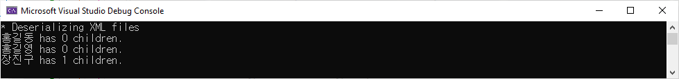 Program.cs에서 JsonSerializerOptions을 설정할 때 PropertNameCaseInsensitive, WriteIndented와 IncludeFields부분을 주서처리하고 예제를 다시 실행해 보면 결과를 다음과 같이 바뀌게 됩니다.