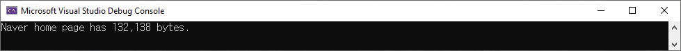 위와 같이 작성한 후 project를 실행하면 아래와 같은 결과를 확인할 수 있습니다. 이때 byte는 naver main home page가 주기적으로 바뀌면서 표시되는 숫자 역시 달라질 수 있습니다.