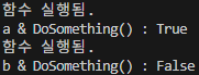 Console.WriteLine($"AND a/b : {a & b}");