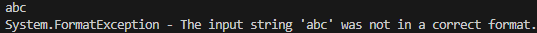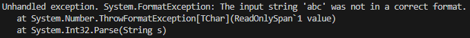 int i = int.Parse("abc");