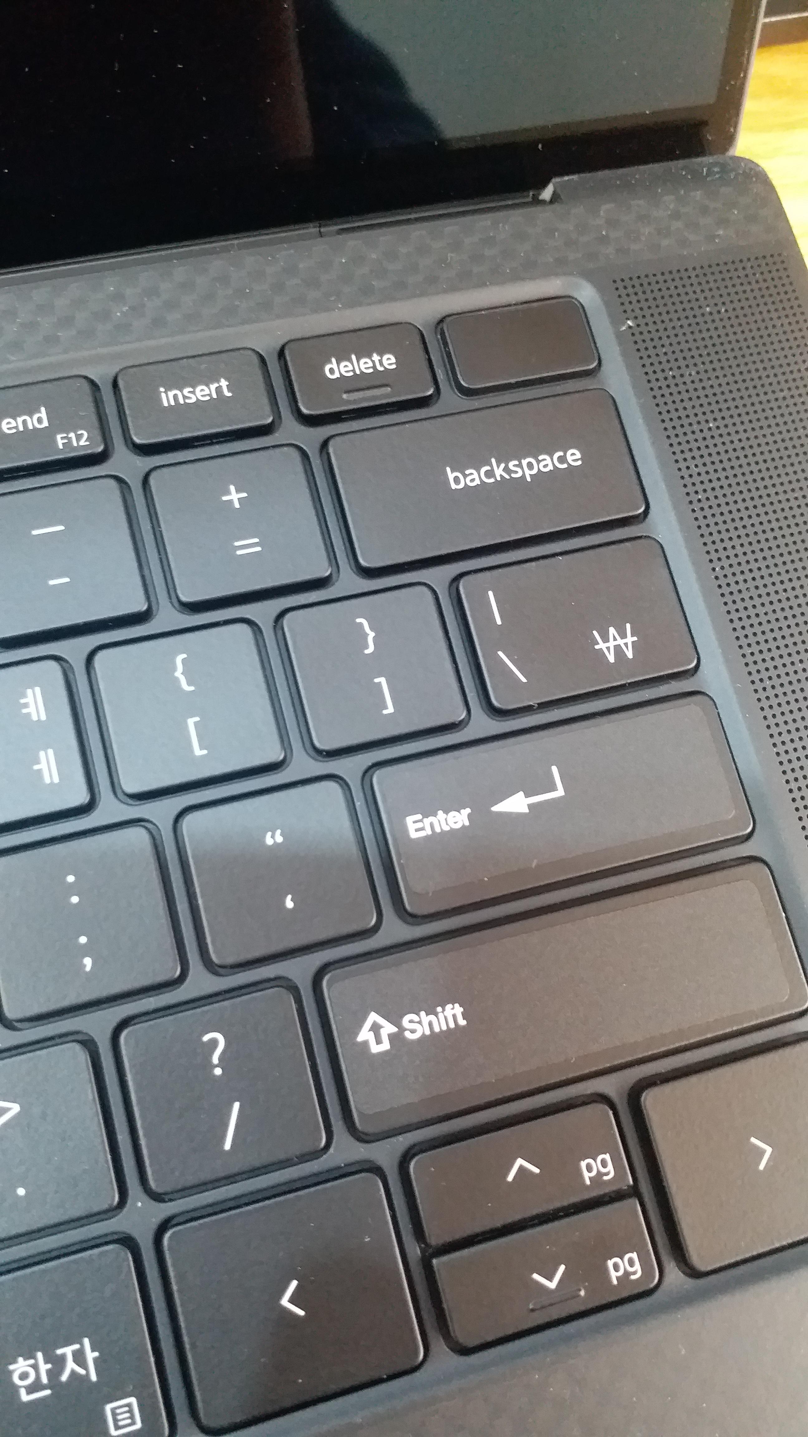 처음에는 진짜 삭제를 위해 delete대신 전원 버튼을 누르는 경우가 생기기도 했습니다. 이 부분은 적응하면 괜찮기도 하지만 어차피 전원 버튼의 압력 강도가 다른 키들보다도 훨씬 높에 되어 있기 때문에 실수로 전원 버튼을 누른다고 한들 실제 노트북을 끄거나 하는 상황은 발생하지 않았습니다. 뭐 아무리 그래도 그냥 따로 떨어뜨려 놓았으면 훨씬 좋지 않았을까 라는 생각이 들기는 합니다.