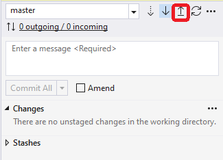 임의의 프로젝트를 생성하고 Team Explorer에서 Open Git Changes를 클릭하여 Git Change로 들어옵니다.