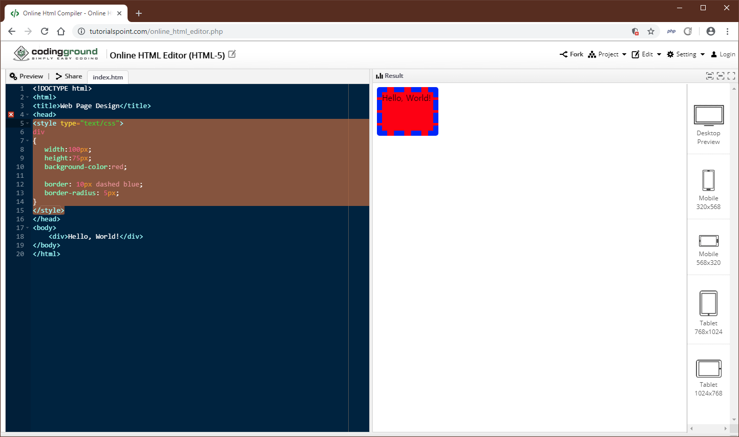 border: 10px dashed blue;