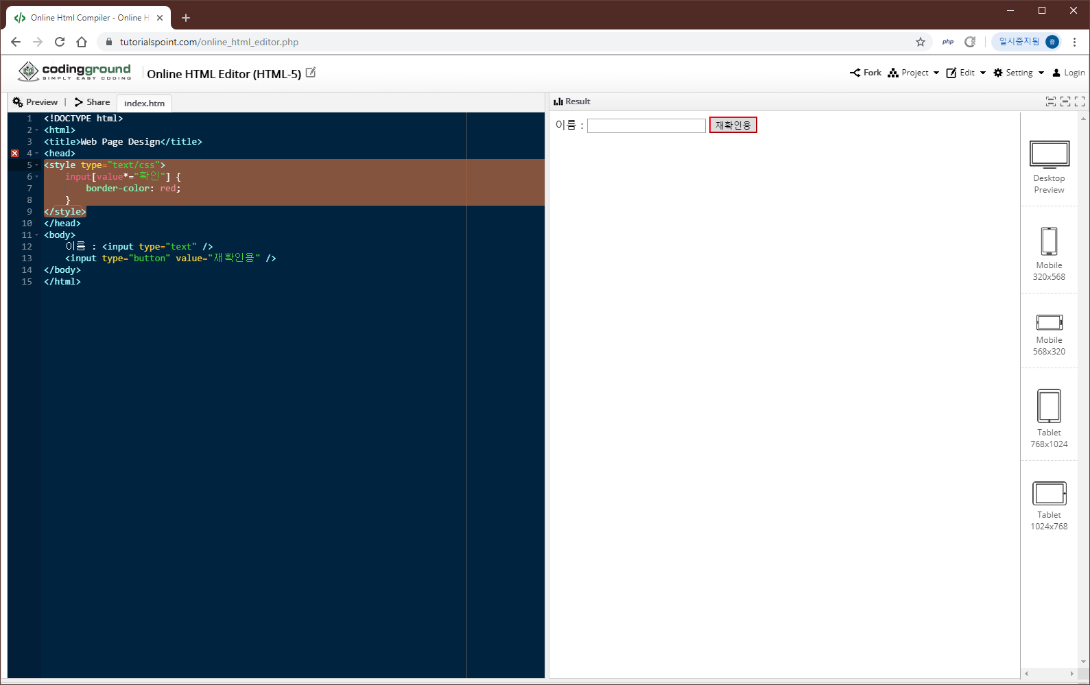 이외 ^=는 특정값으로 시작하는 태그만, $=는 특정값으로 끝나는 태그만 선택하도록 합니다.