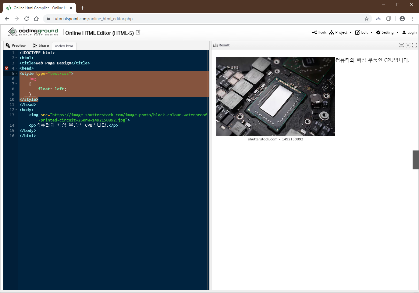 위와같이 이미지와 글자의 레이아웃을 구성할 수 있습니다. 속성의 값으로는 left와 right를 사용할 수 있으며 인접한 태그를 왼쪽 혹은 오른쪽에 배치할 수 있도록 합니다.