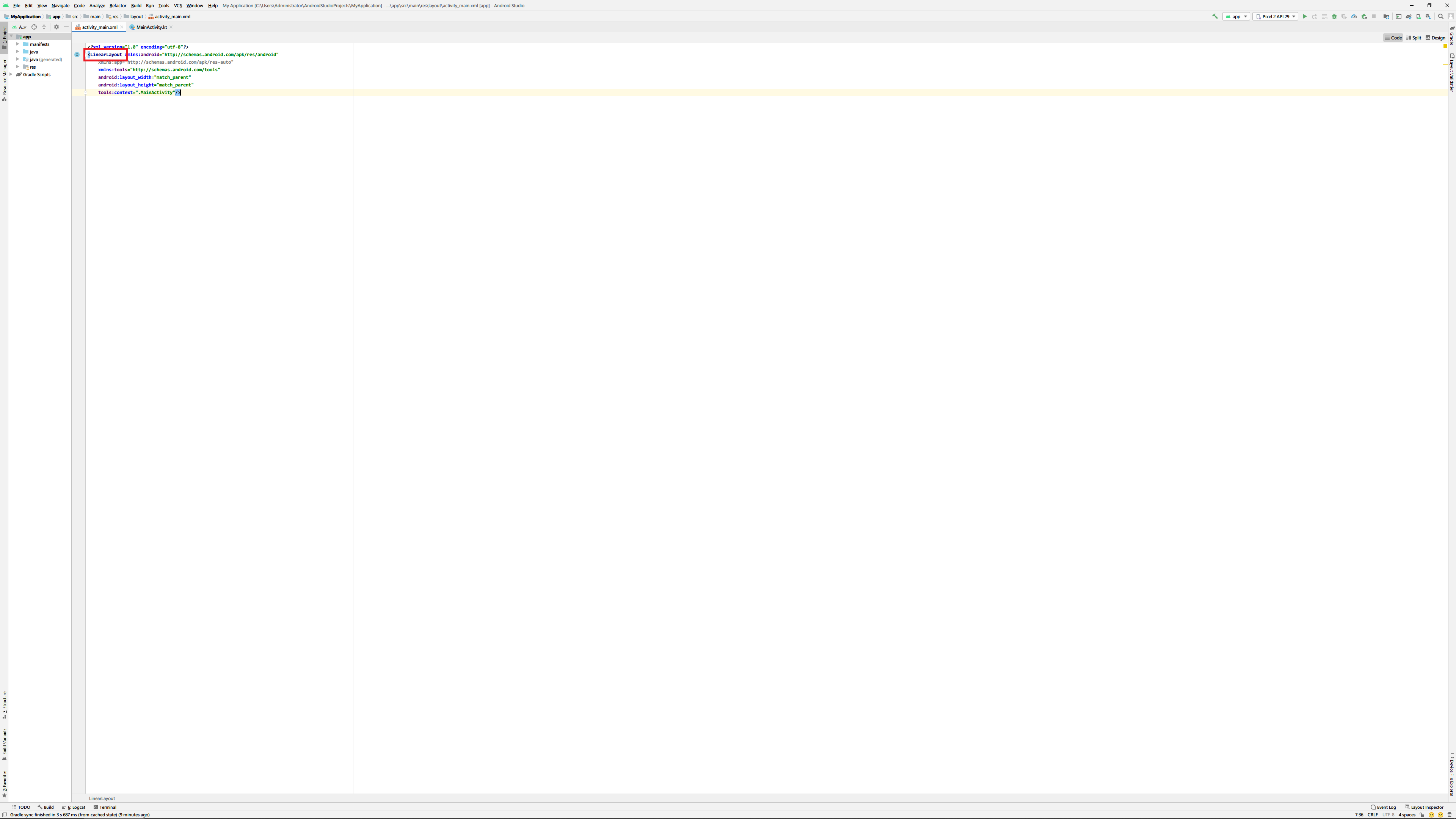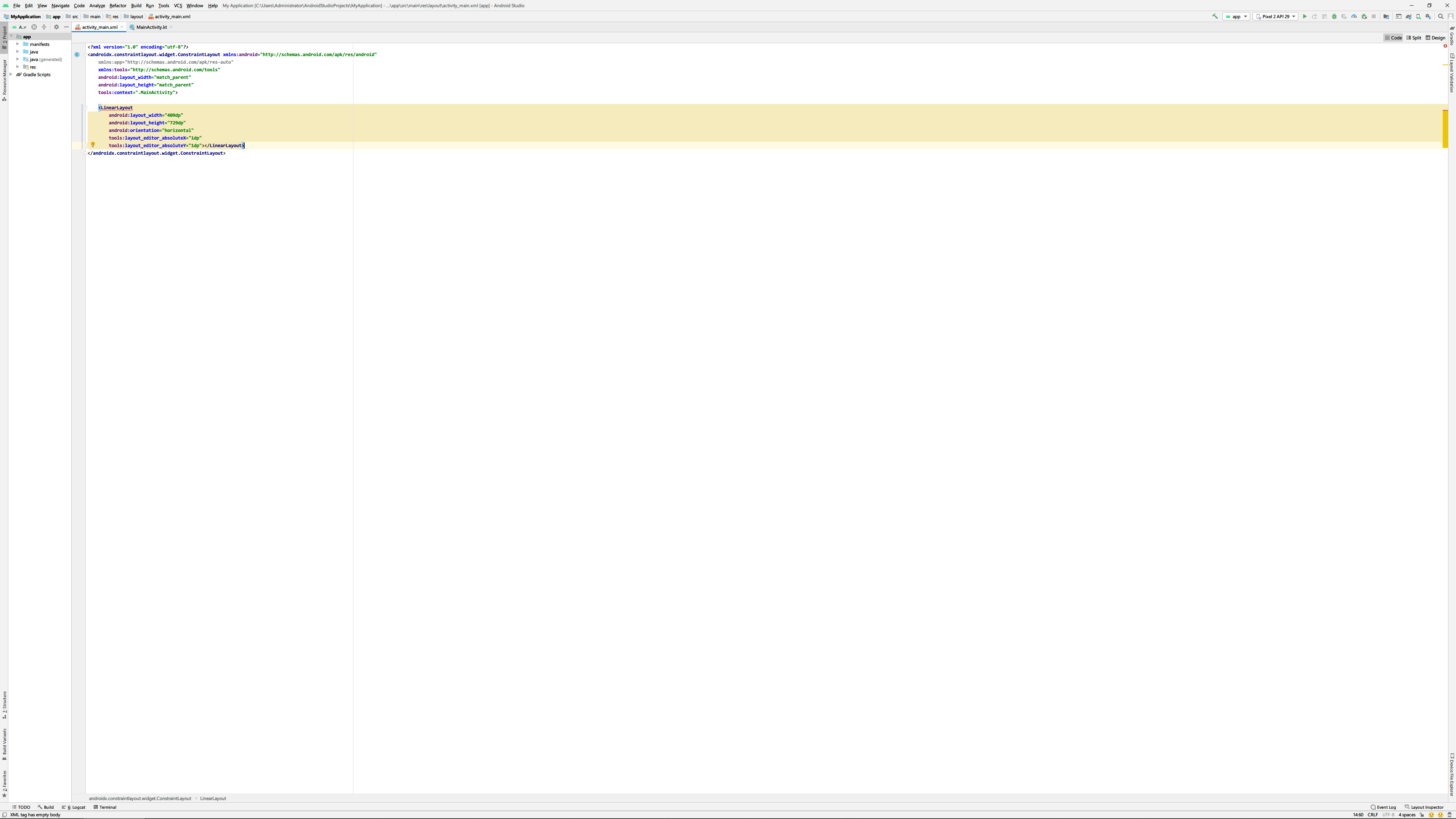 리니어 레이아웃은 위젯을 가로 혹은 세로로 배치하기 위한 레이아웃입니다. 각각의 레이아웃에서는 사용가능한 설정이 상당히 많고 모든걸 다 알 수 없기 때문에 여기서는 간단히 어떤 용도로 사용한다는 정도만 알고자 합니다. 이 레이아웃을 사용하기 위해서는 기존 레이아웃을 아래와 같이 변경하거나