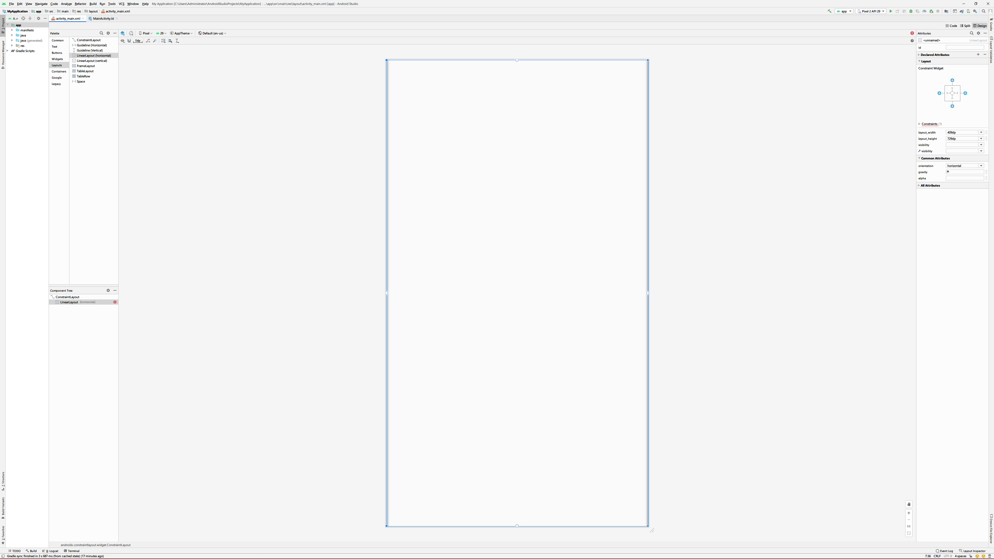 리니어 레이아웃은 2가지가 있는데 Horizontal은 위젯을 가로로
