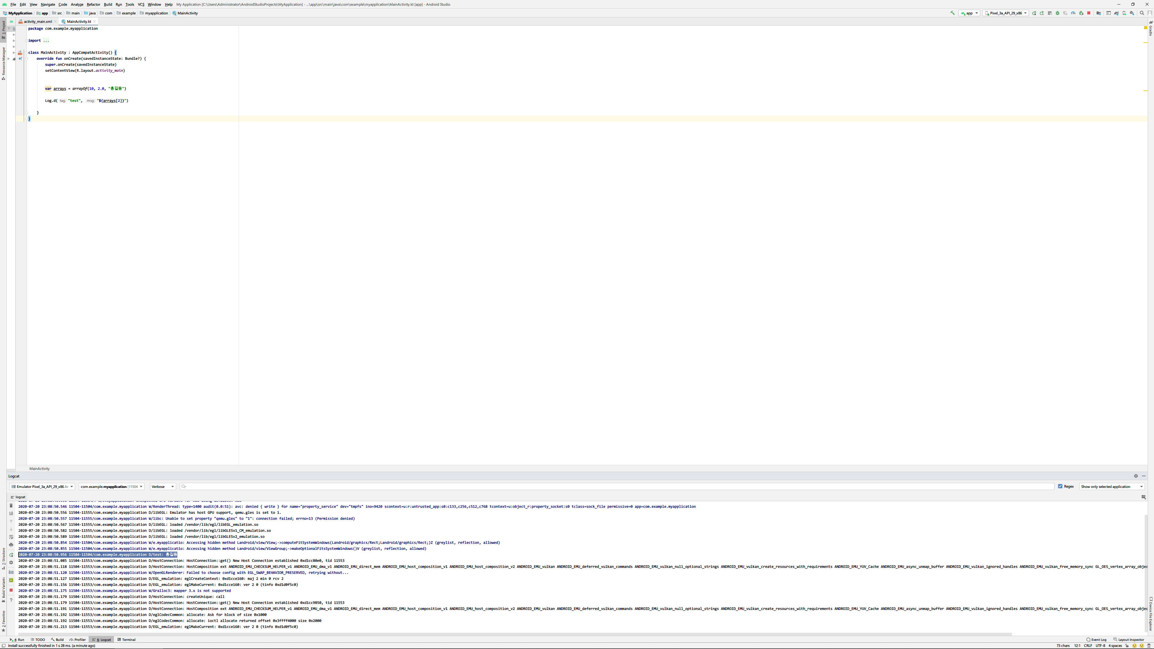 예제는 Int형 배열을 10개 할당하라는 의미입니다. Long이나 Double과 같이 다른 타입의 배열을 지정하고자 한다면 해당 타입 + Array형태로 배열을 선언하면 됩니다.