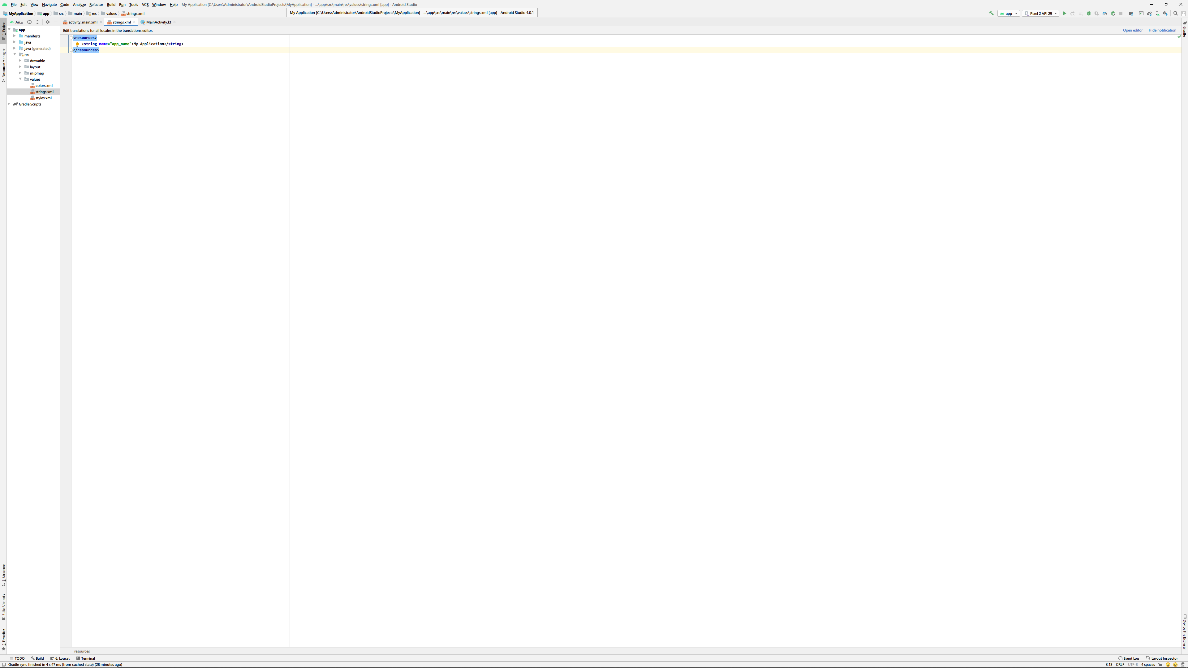 <string name="app_name">My Application</string>