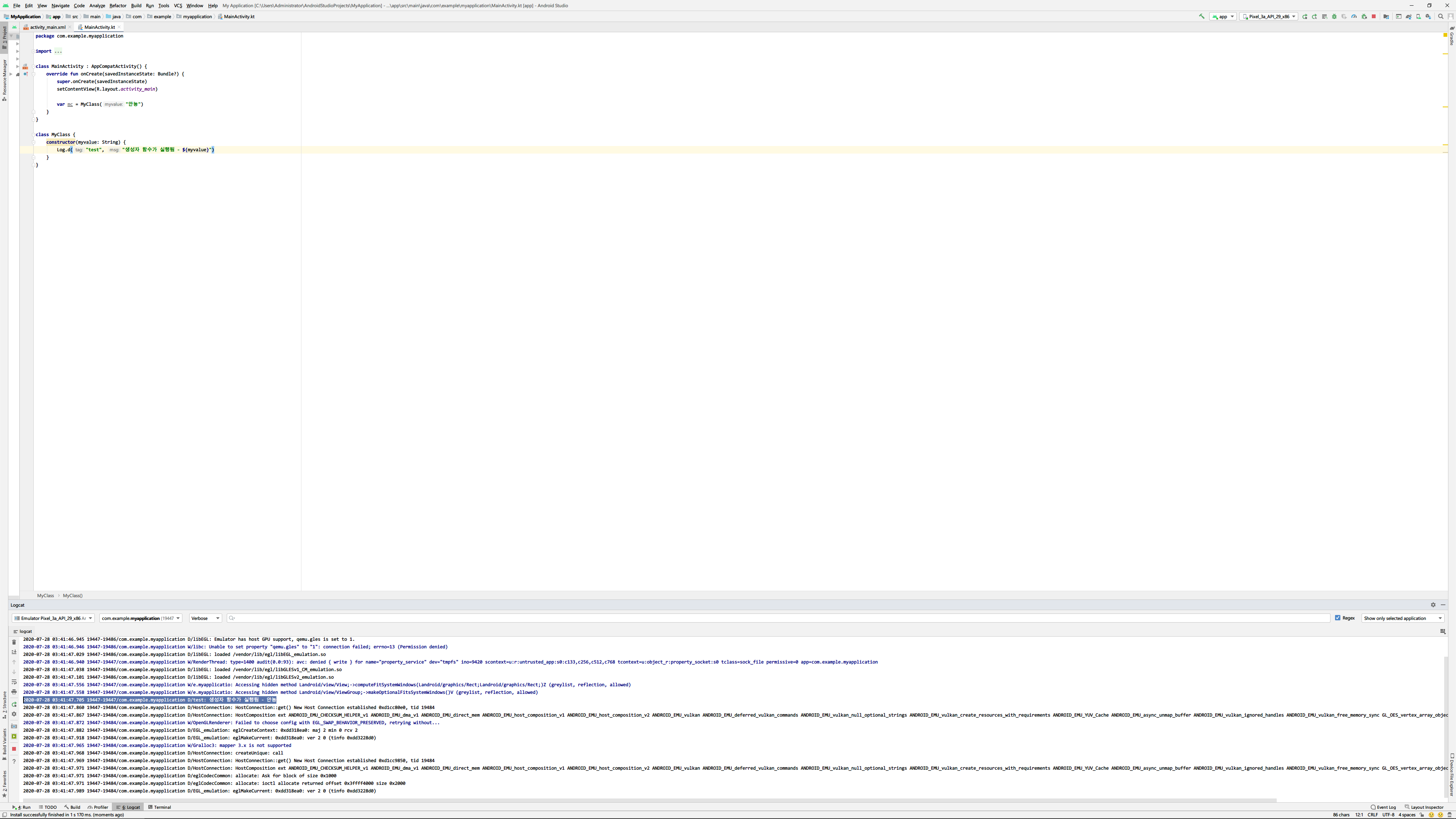 Log.d("test", "생성자 함수가 실행됨")