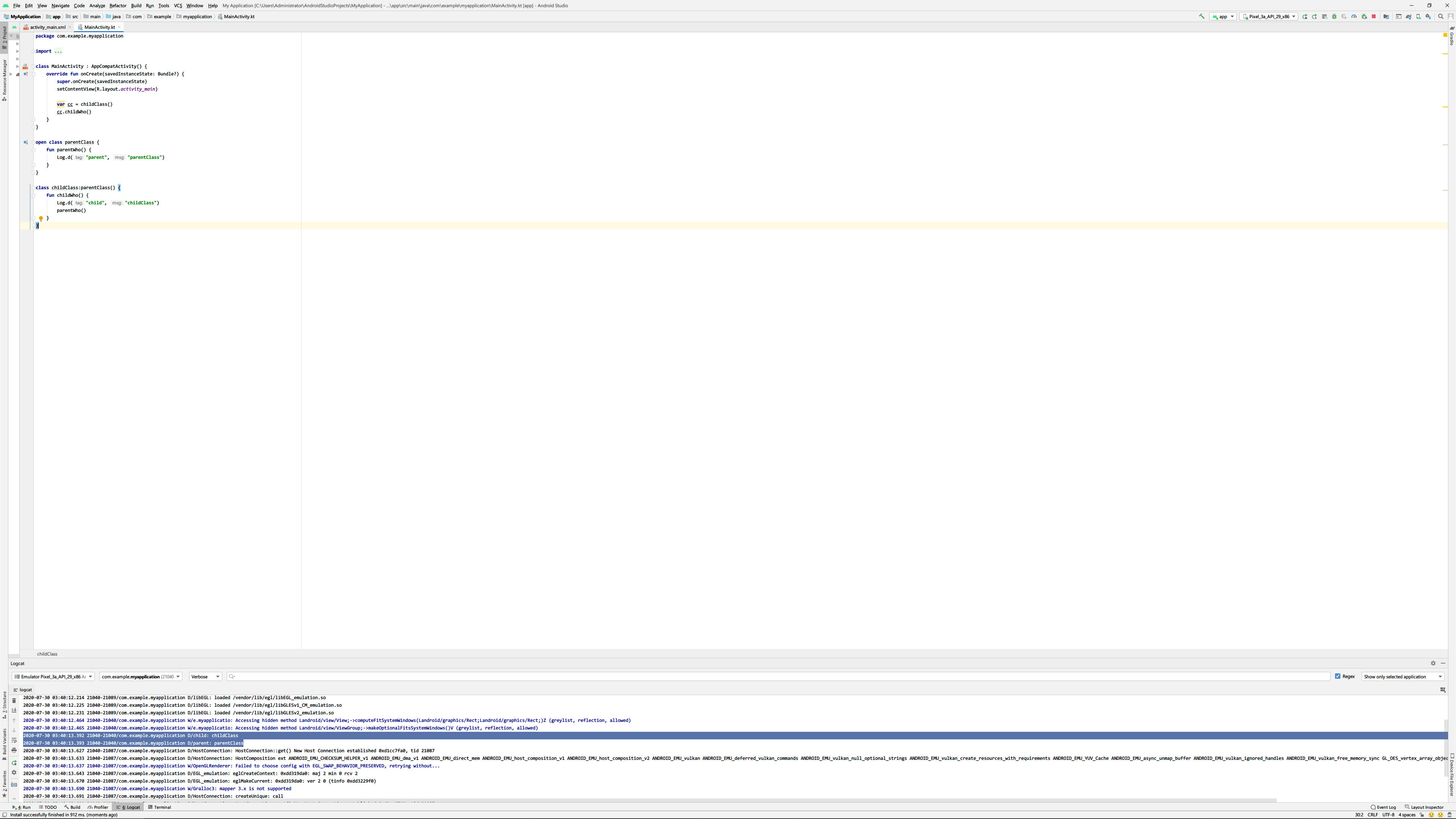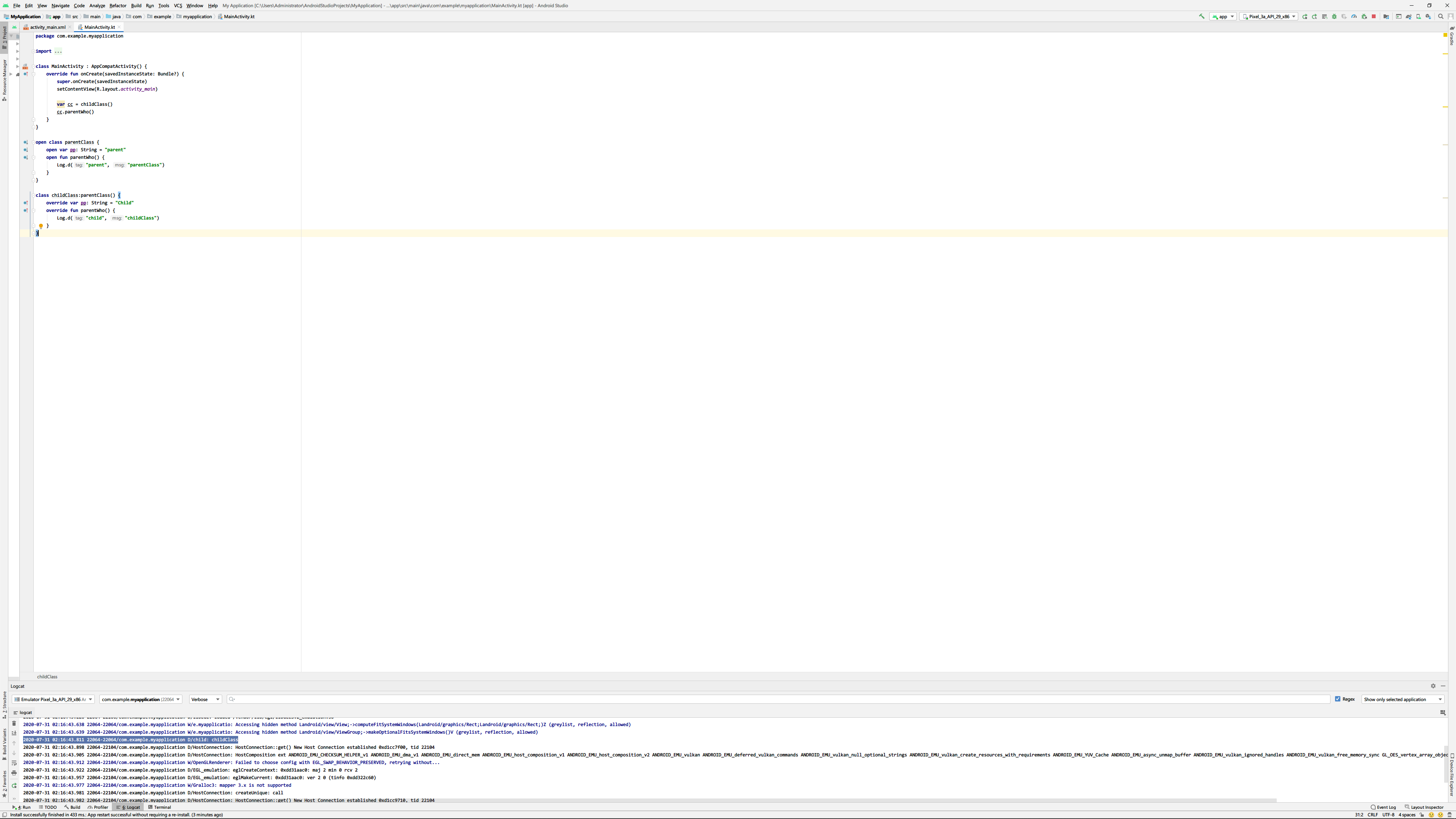 Log.d("child", "childClass")