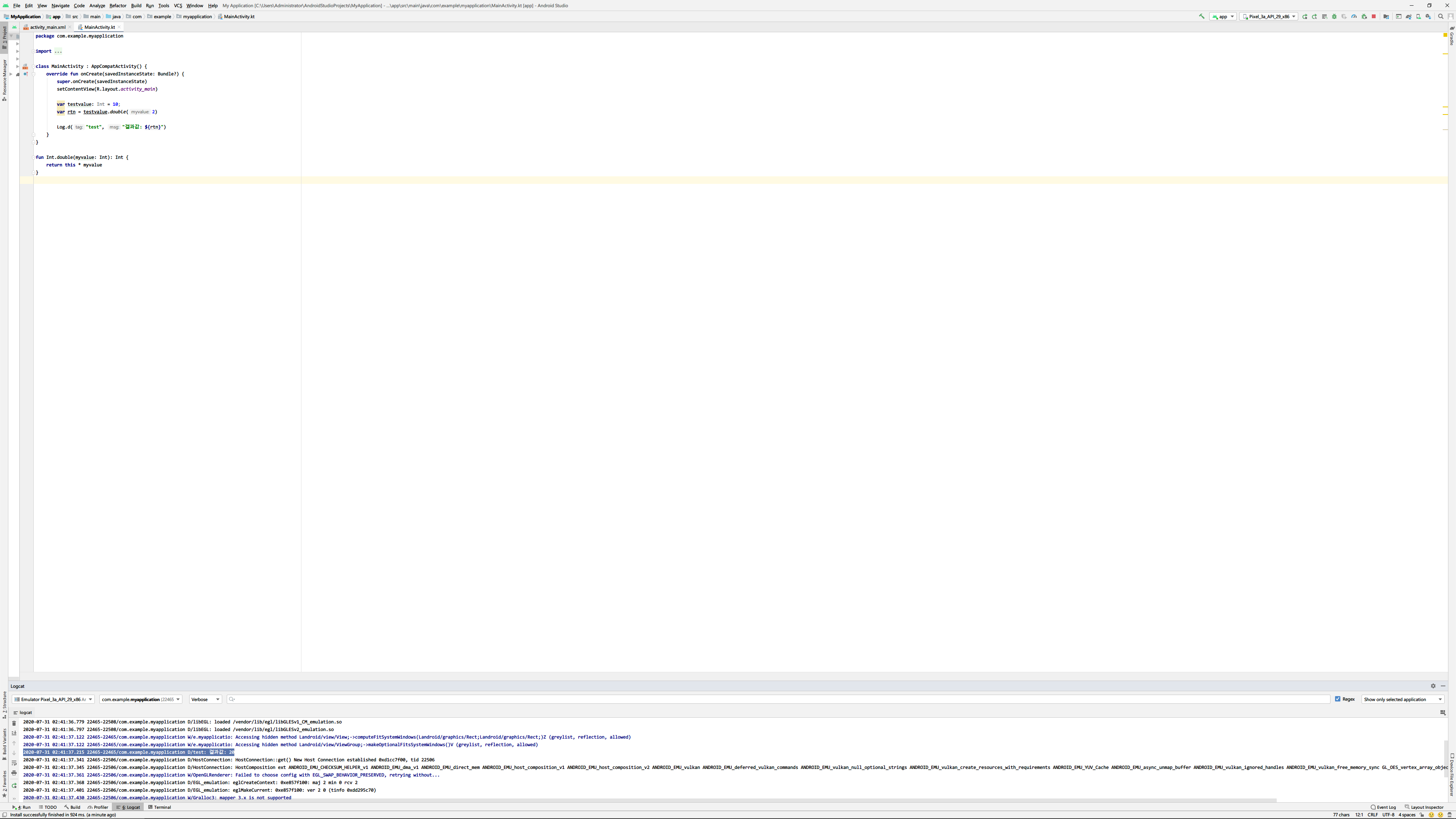 Log.d("test", "결과값: ${rtn}")
