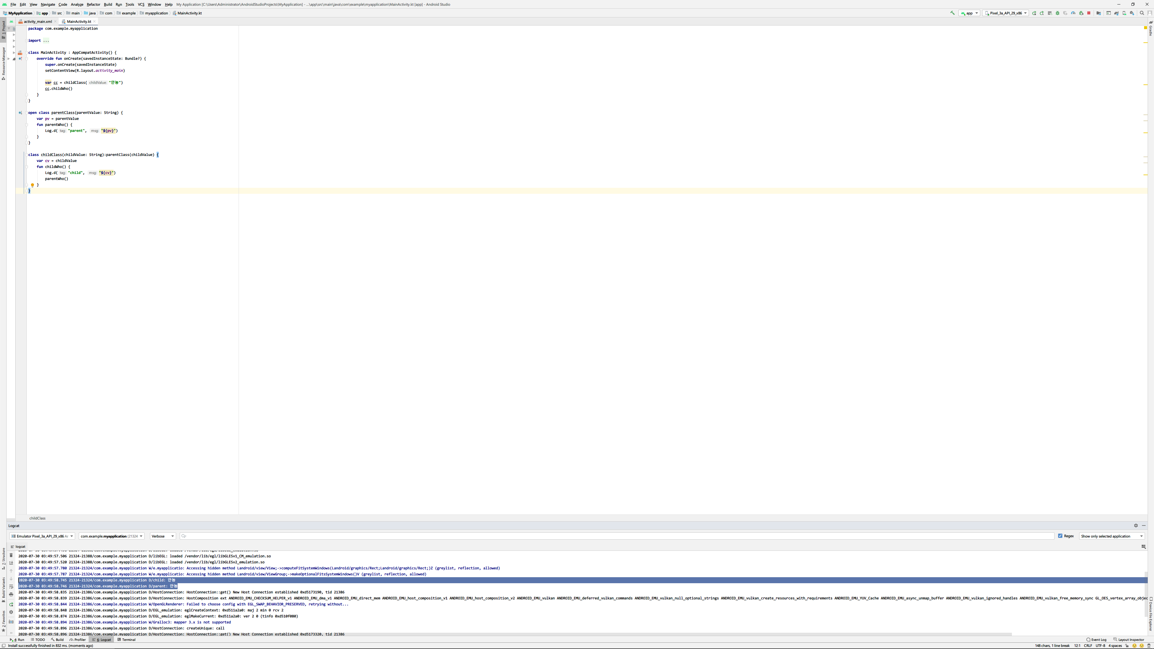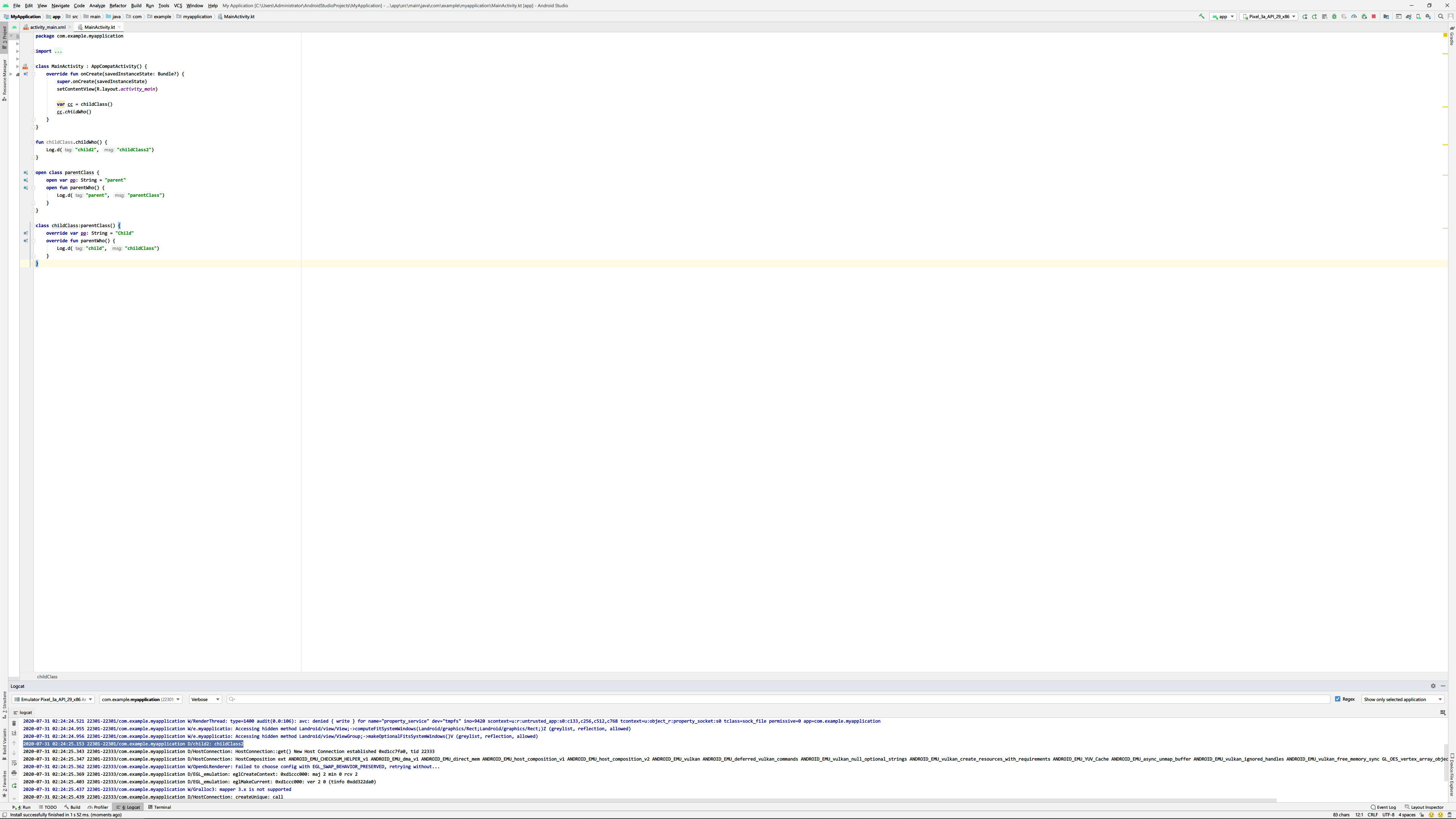 Log.d("child2", "childClass2")
