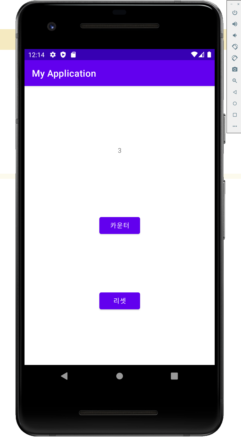 우선 핸들러를 작성하기 위에서 배치한 위젯에 접근하기 위한 선행작업을 먼저 작성합니다. findViewById() 메서드를 사용해 MainActivity에 있는 위젯을 가져올 수 있도록 하고, 정수를 담을 수 있는 count라는 변수를 선언합니다.