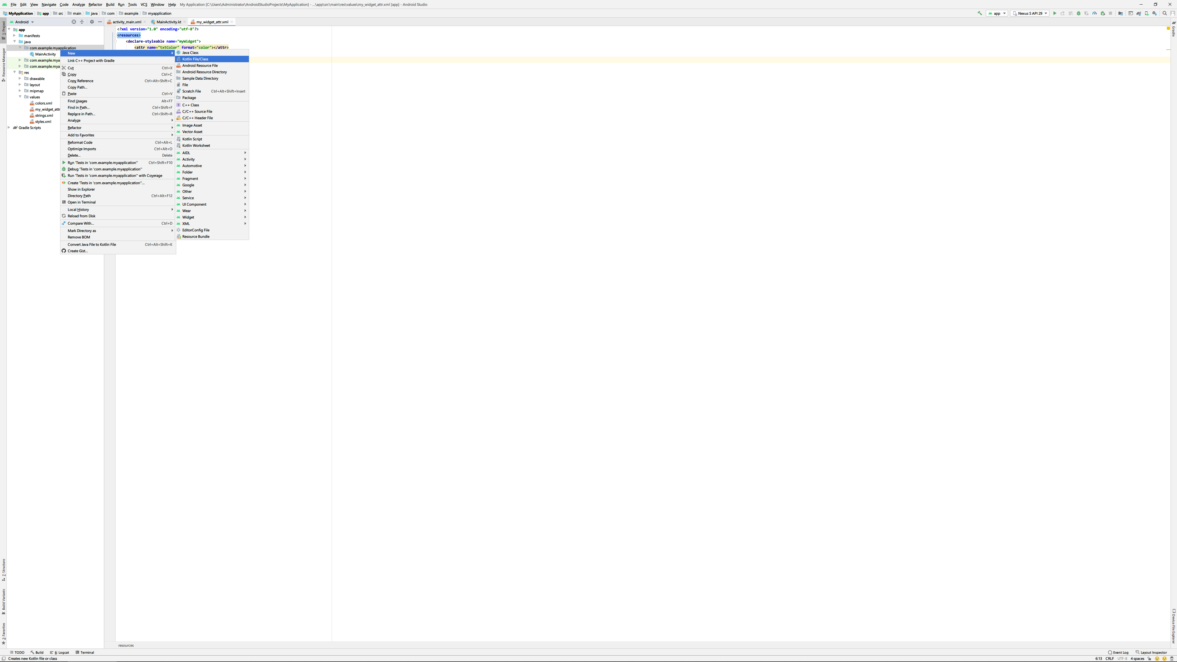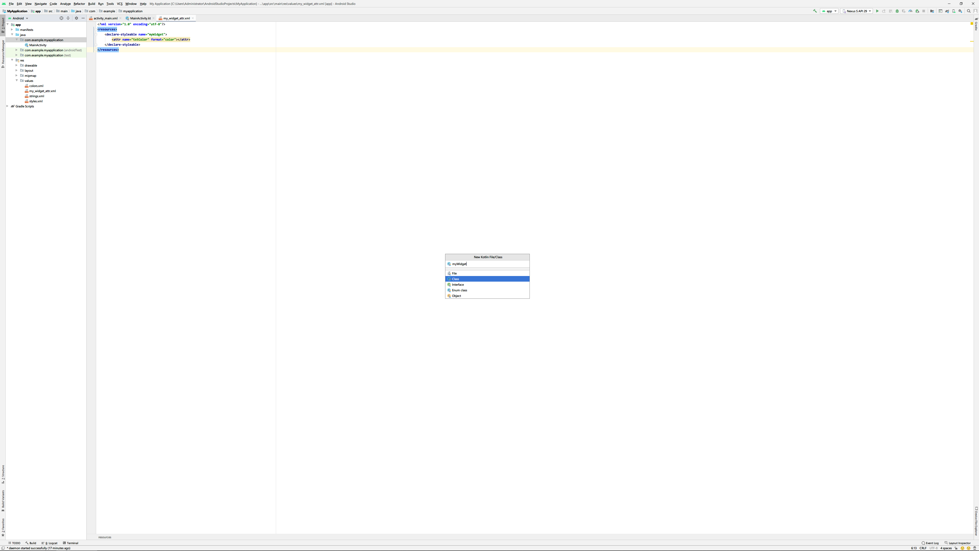 val widget_attr = context.obtainStyledAttributes(attrs, R.styleable.myWidget)