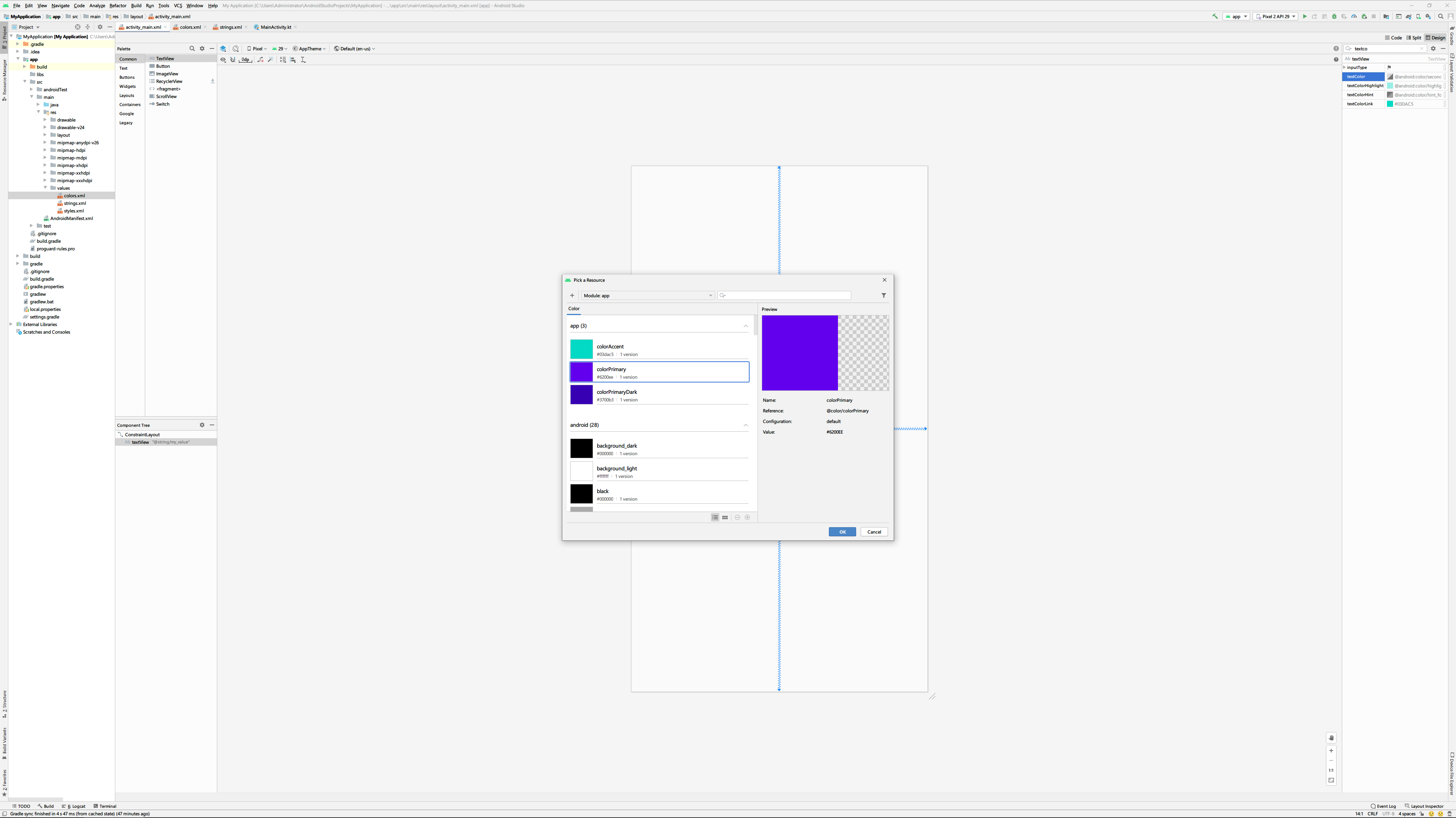 <color name="colorPrimary">#6200EE</color>