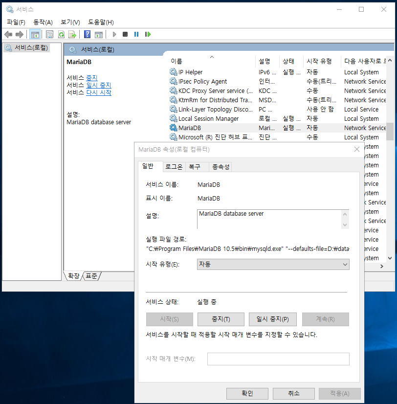 1. service.msc 에서 MariaDB 서비스를 중지합니다.