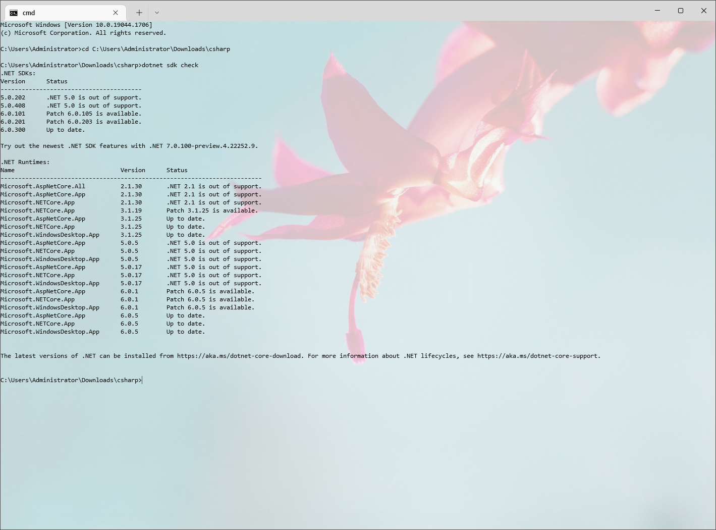 특히 .NET 6부터는 아래 명령을 통해 현재 설치된 .NET SDK와 Runtime의 버전과 업데이트가 필요한지의 여부를 확인할 수 있습니다.